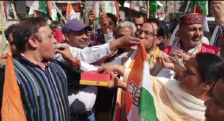 कर्नाटक की जीत पर कांग्रेसियों ने मनाया जश्न।