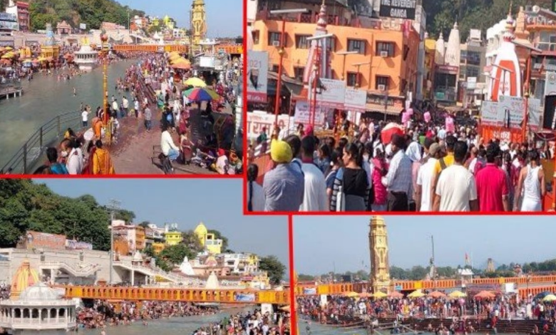 शनिवार से तीन दिन की लगातार सरकारी छुट्टी होने के कारण धर्मनगरी हरिद्वार में उमड़ी यात्रियों की भीड़। शनिवार की सुबह से दिल्ली, पंजाब, हरियाणा और यूपी के यात्रियों की भारी संख्या में भीड़ देखी गयी। सोमवार को साप्ताहिक अवकाश के बाद इगास की छुट्टी है, जिससे आस- पास के जिलों के श्रध्दालु पहुंचे धर्मनगरी।
