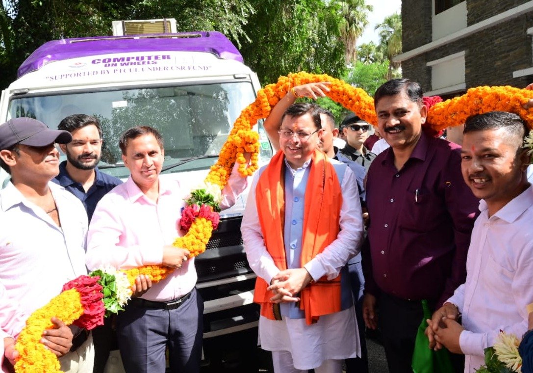 Dehradun : मुख्यमंत्री पुष्कर सिंह धामी ने किया कम्प्यूटर ऑन व्हील वाहन का फ्लैग ऑफ