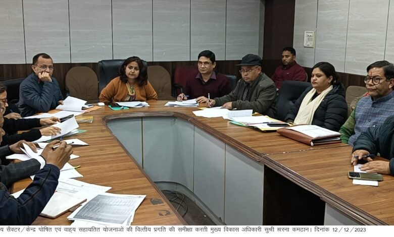 देहरादून : मुख्य विकास अधिकारी झरना कमठान की अध्यक्षता में जिला योजना/राज्य सैक्टर/केन्द्र पोषित एवं वाह्य सहायतित योजनाओं की वित्तीय प्रगति की समीक्षा बैठक विकासभवन सभागार में आयोजित की गई। जिला योजना अवमुक्त धनराशि रू0 9207.91 लाख के सापेक्ष व्यय 52.28 प्रतिशत्, राज्य सैक्टर में अवमुक्त धनराशि रू0 49739.46 लाख के सापेक्ष व्यय 63.38 प्रतिशत्, केन्द्र पोषित योजनाओं में अवमुक्त धनराशि रू0 41848.63 लाख के सापेक्ष व्यय 83.50 प्रतिशत्, वाह्य सहायतित योजनाओं में अवमुक्त धनराशि रू0 2572.39 लाख के सापेक्ष व्यय 46.81 प्रतिशत् प्रगति रही।
