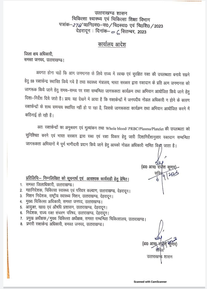 7. आम जन में ब्लड डोनेशन हेतु जागरूकता अभियान चलाया जाये।