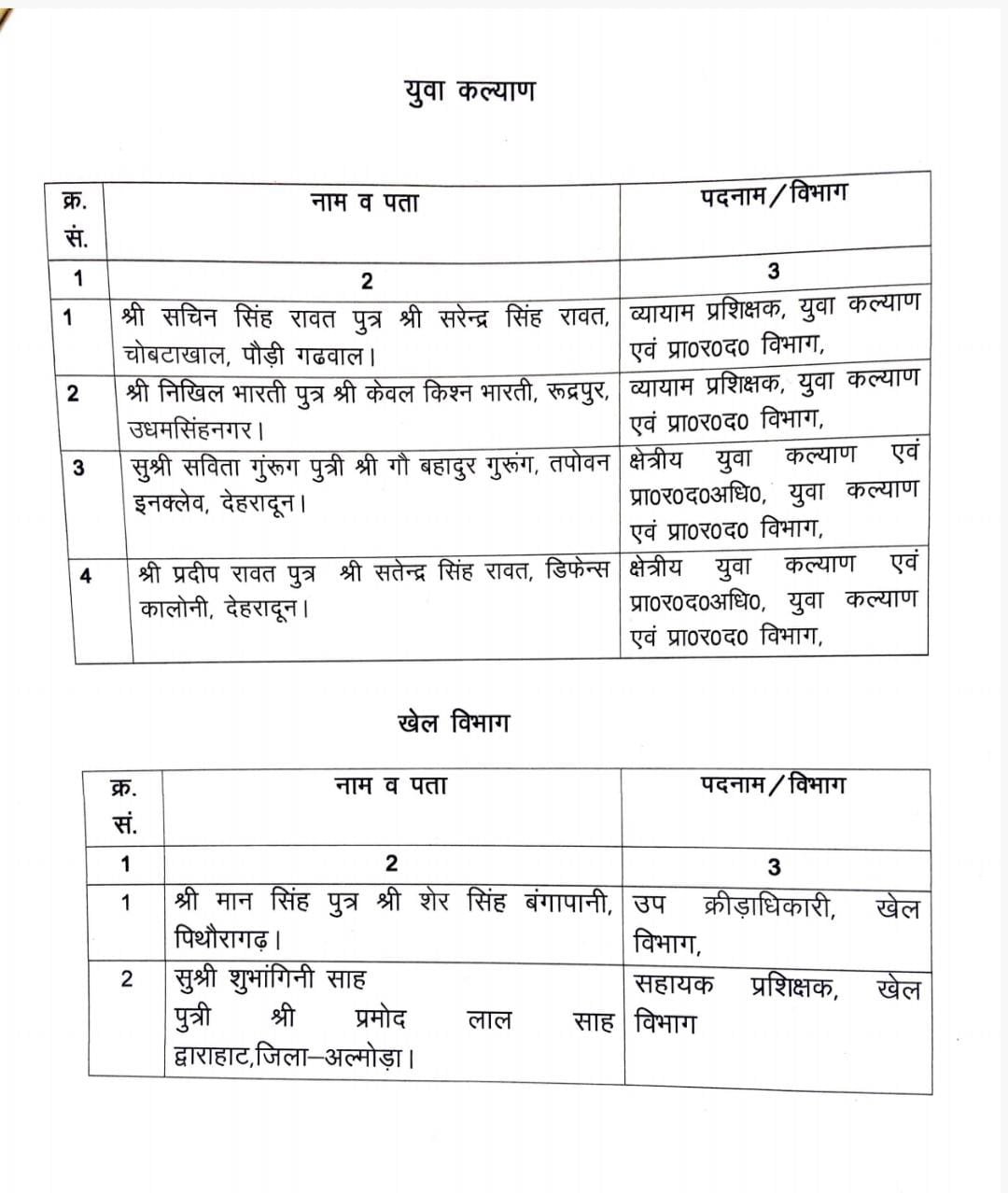 देहरादून : कल मुख्यमंत्री आवास स्थित मुख्य सेवक सदन में मुख्यमंत्री धामी और खेल मंत्री रेखा आर्या खेल नीति-2021 के अन्तर्गत राज्य के विशिष्ट खिलाड़ियों को “आउट ऑफ टर्न जॉब”के नियुक्ति पत्र दिए देंगे।