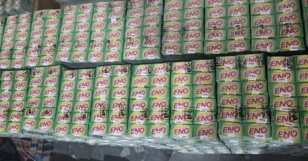 छापेमारी के दौरान पुलिस ने भारी मात्रा में सामग्री जब्त की, मुख्य रूप से 91,257 नकली ‘ईनो’ सैशे, 80 किलोग्राम नकली पाउडर, 13 किलोग्राम प्रिंटेड रोल, 54,780 स्टिकर, 2,100 खाली पैकेट और एक उन्नत पैकिंग मशीन बरामद हुई। ये सामग्री असली ब्रांड की पैकेजिंग से मिलती-जुलती थी, जिसमें लोगो, बैच नंबर और एक्सपायरी डेट तक जाली तरीके से बनाए गए थे। अनुमानित मूल्य लाखों रुपये में है, जो बाजार में बिक्री पर करोड़ों का नुकसान पहुंचा सकता था।