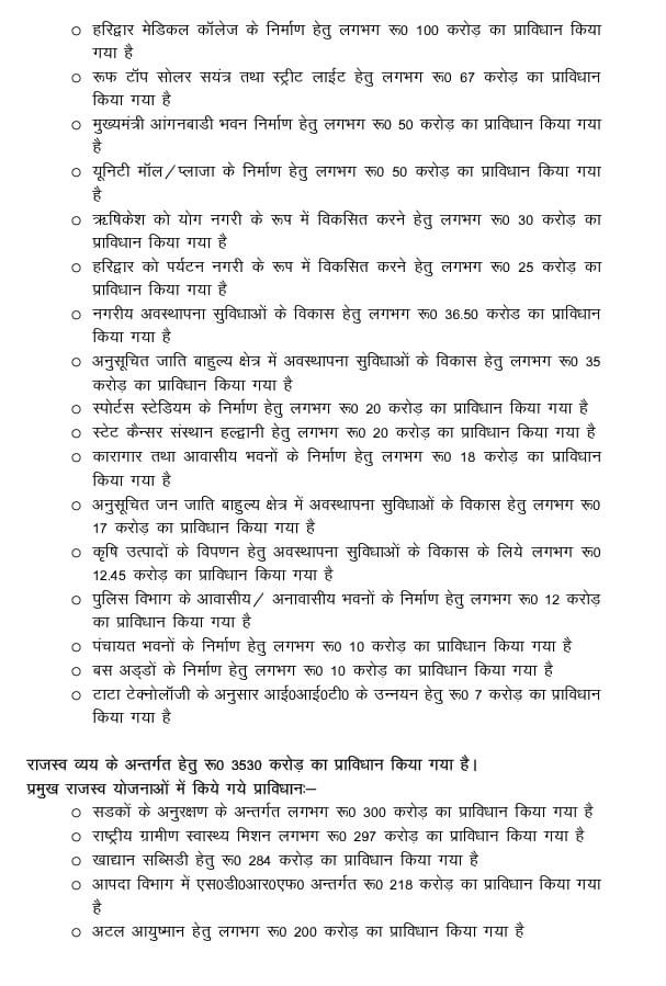 राजस्व व्यय के अन्तर्गत हेतु रू0 3530 करोड़ का प्राविधान किया गया है।
