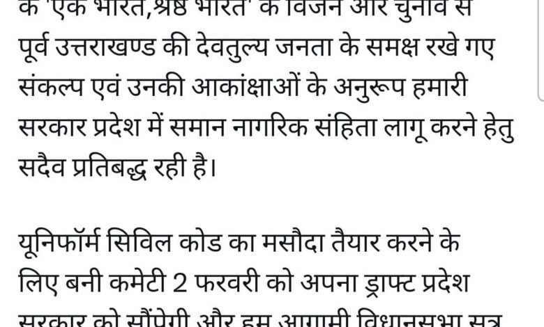 उत्तराखंड में जल्द लागू होगा यूसीसी