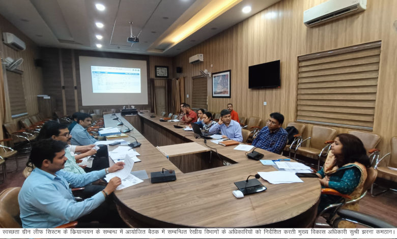देहरादून। मुख्य विकास अधिकारी झरना कमठान की अध्यक्षता में स्वच्छता ग्रीन लीफ सिस्टम के सम्बन्ध में बैठक आहूत की गई। पेयजल एवं स्वच्छता विभाग, जल शक्ति मंत्रालय एवं पर्यटन मंत्रालय, भारत सरकार के निर्देशों के अनुसार ग्राम पंचायत के अन्तर्गत ग्रामीण क्षेत्र में आतिथ्य सुविधाओं यथा होटल, रिसार्ट, होमस्टे, धर्मशाला आदि में स्वच्छता ग्रीन लीफ रेटिंग प्रणाली के तहत् रेटिंग दी जानी है।
