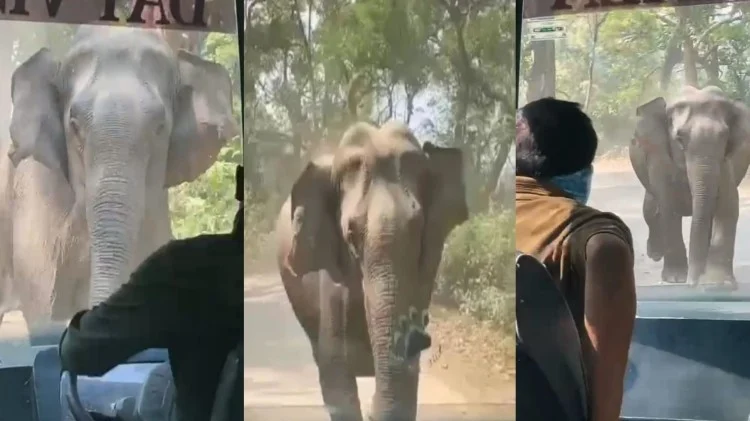 इस बीच जहां सैलानियों में चीख पुकार मच गई वहीं एक सैलानी वीडियो बनाने लगा। उनके चिल्लाने की आवाज से हाथी रुक गयाइससे पर्यटकों की जान में जान आई। कैंटर मालिक सुमित शर्मा ने बताया कि बृहस्पतिवार को चालक अनस पर्यटकों को कैंटर से जंगल सफारी करने गए थे।