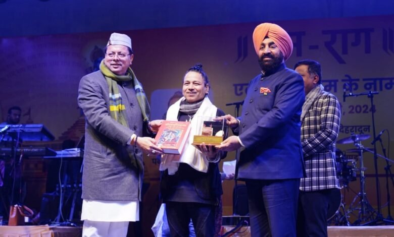 देहरादून : राज्यपाल लेफ्टिनेंट जनरल गुरमीत सिंह (से नि) एवं मुख्यमंत्री पुष्कर सिंह धामी ने बुधवार को सायं रेसकोर्स बन्नू स्कूल में आयोजित राम राग एक संध्या राम के नाम भजन संध्या में शामिल हुए। उन्होंने पद्म श्री कैलाश खेर और कन्हैया मित्तल को सम्मानित करते हुए कहा कि कैलाश खैर और कन्हैया मित्तल अपने भजनों के माध्यम से दुनिया में अपना नाम रोशन कर रहे हैं। उनके भजन भाव विभोर करने के साथ दिल को छू जाने का कार्य करते हैं। दोनों गायकों के भजनों से पूरा वातावरण राममय होने के साथ ही बड़ी संख्या में उपस्थित लोग पूरी तन्मयता से श्री राम की भक्ति में सराबोर नजर आये।