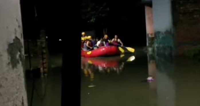 काशीपुर : काशीपुर के हिम्मतपुर में मंगलवार देर रात जलभराव से कई घर जलमग्न हो गए। एसडीआरएफ ने इन घरों में फंसे लगभग 60 लोगों को राफ्ट की सहायता से रेस्क्यू कर सुरक्षित स्थान पर पहुंचाया। प्रभावितों के रहने की व्यवस्था प्राइमरी स्कूल, हिम्मतपुर में की गई है।