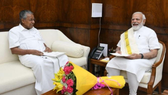 केरल के मुख्यमंत्री पिनराई विजयन ने गुरूवार को राष्ट्रीय राजधानी में प्रधानमंत्री नरेंद्र मोदी से मुलाकात की। यह बैठक केरल सरकार की महत्वाकांक्षी सेमी-हाई स्पीड रेल परियोजना सिल्वरलाइन के खिलाफ विपक्षी दलों के भारी विरोध की पृष्ठभूमि में हुई है। प्रधानमंत्री कार्यालय (पीएमओ) ने ट्वीट किया कि विजयन ने प्रधानमंत्री से मुलाकात की है।