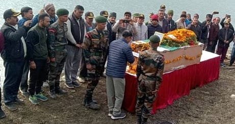 शहीद राइफलमैन को सैन्य सम्मान के साथ दी गई अंतिम विदाई
