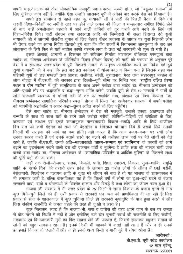 माया ने बहुजन समाज से एकजुट होने की अपील की