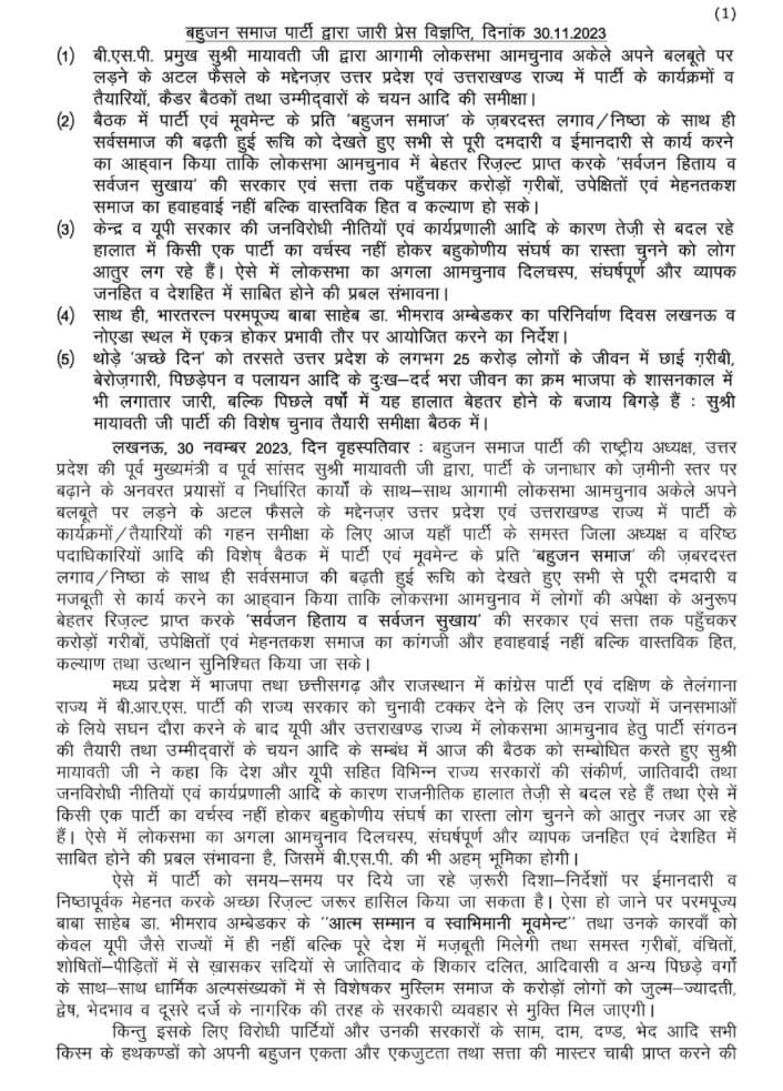 BSP अपने दम पर अकेले चुनाव लड़ेगी- माया