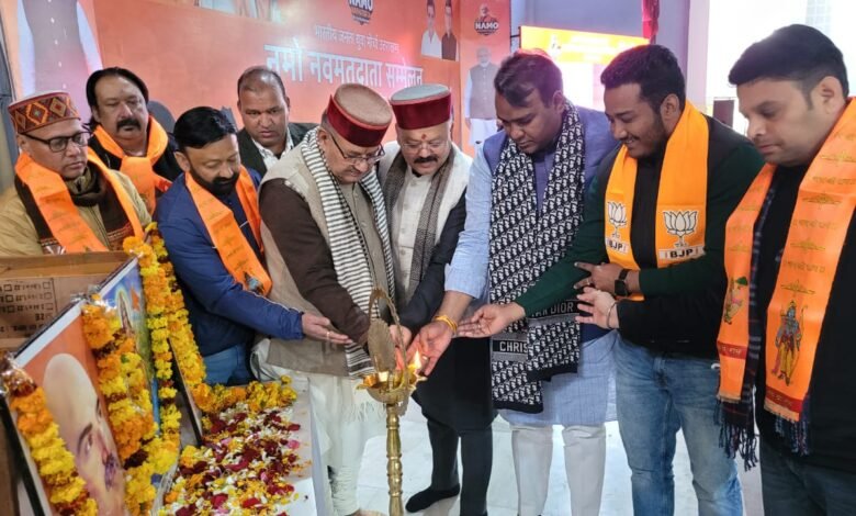 आज दिनांक 25 जनवरी 2023 को मतदाता दिवस के उपलक्ष में देश के यशस्वी प्रधानमंत्री आदरणीय नरेंद्र मोदी जी के नमो नव मतदाता अभियान के तहत महानगर देहरादून की पांचो विधानसभाओं में आदरणीय प्रधानमंत्री नरेंद्र मोदी जी के लाइव वार्तालाप कार्यक्रम आयोजित किए गए। मसूरी विधानसभा में उत्तराखंड सरकार में कैबिनेट मंत्री गणेश जोशी जी ने सभी नव युवा मतदाताओं को शुभकामनाएं दी साथ ही अभिनंदन किया कि नव मतदाताओं के लिए देश के यशस्वी प्रधानमंत्री आदरणीय नरेंद्र मोदी जी नमो नव मतदाताओं को भारत का नवनिर्माण करने के लिए नमन करते हैं। ऐसी विराट सोच वाले देश के प्रधानमंत्री आदरणीय नरेंद्र मोदी जी ही हो सकते हैं।