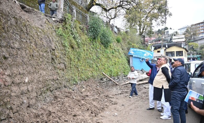 होटल का पुश्ता ढहने से पांच वाहन क्षतिग्रस्त होने और अन्य नुकसान का मसूरी के विधायक मंत्री गणेश जोशी ने किया निरीक्षण