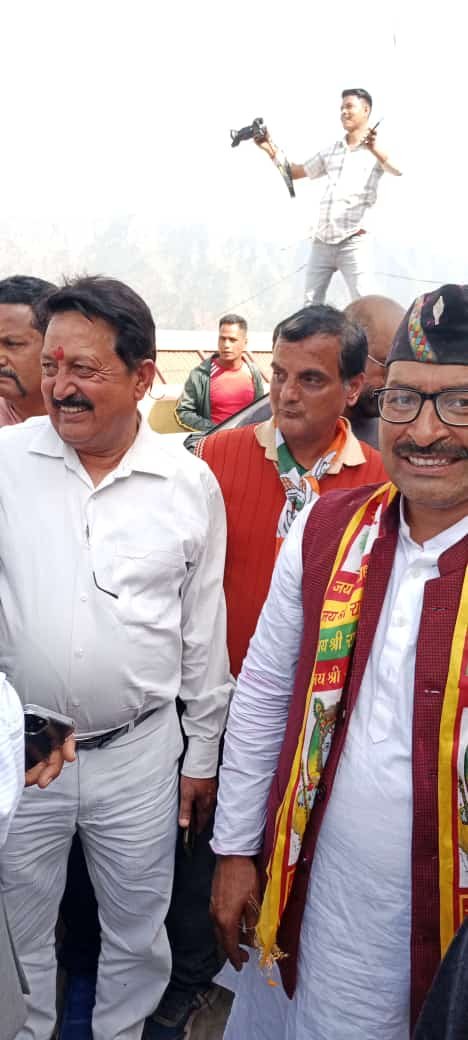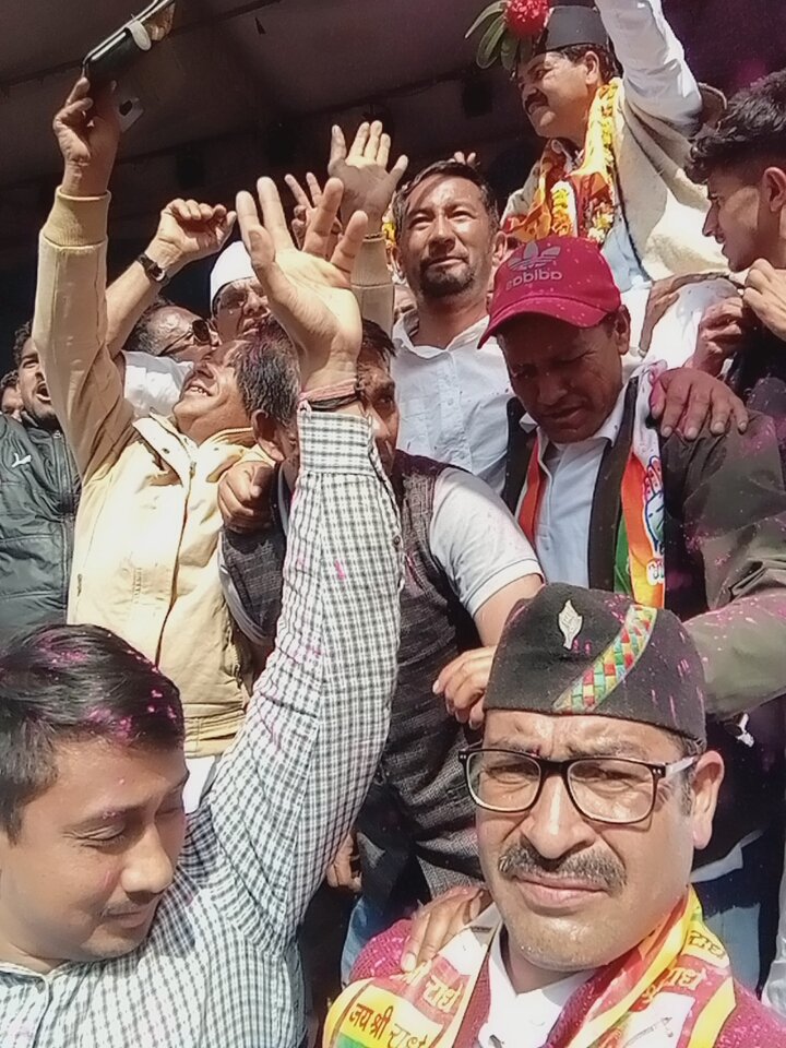 बसंत ऋतु का परिचयक बुरांश के फूल को शिरोधारण करे हुए लोकसभा प्रत्याशी गणेश गोदयाल समर्थकों के साथ नए उत्साह उमंग और जोश खरोस से लोकसभा 2024 के चुनाव में विजय घोष करते हुए।