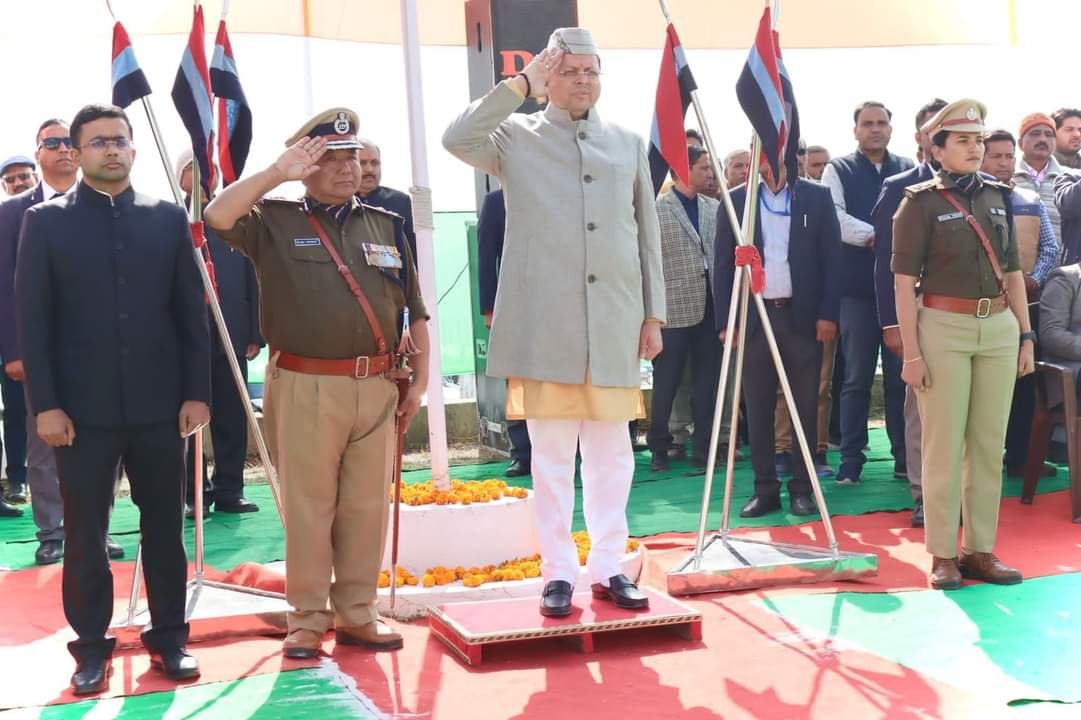 उत्तराखण्ड़ राज्य स्थापना दिवस के शुभअवसर पर आज 09 नवम्बर 2023 को राज्य की ग्रीष्मकालीन राजधानी गैरसैंण के विधानसभा भवन भराडीसैण जनपद चमोली में भव्य रैतिक परेड एवं रंगारंग सास्कृतिक कार्यक्रम आयोजित किये गये। इस अवसर पर मा0 मुख्यमंत्री उत्तराखण्ड़ श्री पुष्कर सिंह धामी महोदय द्वारा चमोली पुलिस, आईआरबी तथा होमगार्ड के जवानों एवं एनसीसी के छात्रों द्वारा महिला बैण्ड की मधुर धुन से साथ प्रस्तुत भव्य रैतिक परेड का मान-प्रणाम ग्रहण कर परेड का निरीक्षण किया गया। मा0 मुख्यमंत्री द्वारा अनुशासित और भव्य रैतिक परेड के लिए पुलिस परिवार को बधाई देते हुए परेड की सराहना की गयी। रैतिक परेड़ की कमान अपर पुलिस अधीक्षक संचार विपिन कुमार द्वारा सभांली गयी जिनकी बुलंद आवाज एवं बेहतर कमांड ने उपस्थित दर्शकों का ध्यान खींचा।