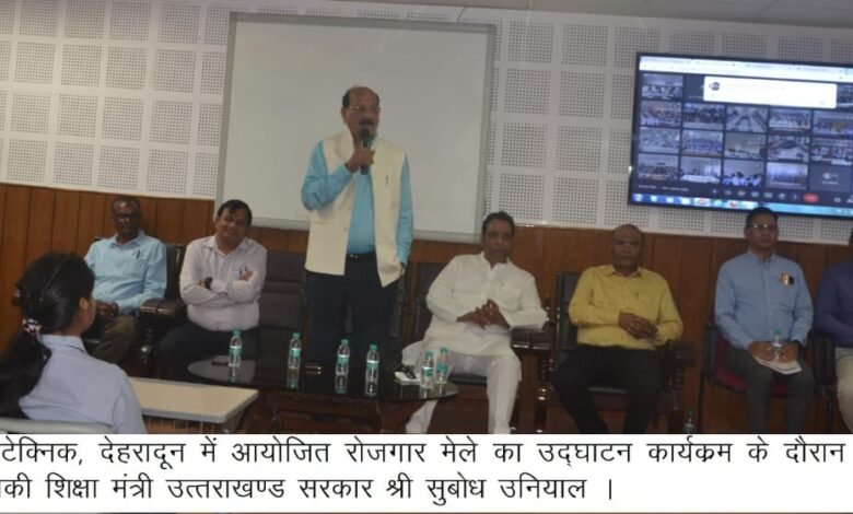 - देहरादून @ शगुफ्ता परवीन : मुख्यमंत्री उत्तराखण्ड सरकार एवं मंत्री तकनीकी शिक्षा के दिशा निर्देशानुसार पॉलीटेक्निक संस्थाओं के सभी छात्र-छात्राओं को रोजगार के अवसर प्रदान करने हेतु रोजगार मेलों का आयोजन किया जा रहा है।