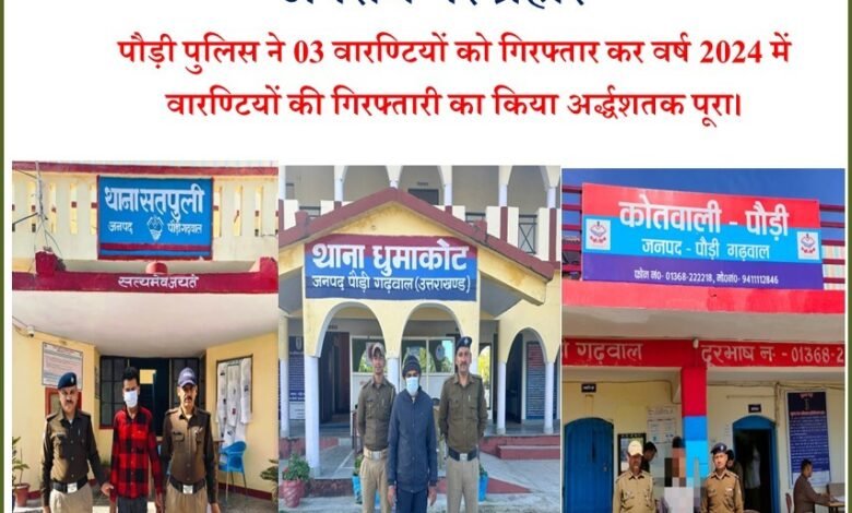 पौड़ी पुलिस ने 3 वारण्टियों को गिरफ्तार कर वर्ष 2024 में वारण्टियों की गिरफ्तारी का किया अर्द्धशतक पूरा…