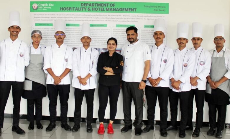 ग्राफिक एरा हिल यूनिवर्सिटी हल्द्वानी में आज होटल और हॉस्पिटैलिटी मैनेजमेंट डिपार्टमेंट द्वारा एक रोचक कार्यशाला का आयोजन किया गया। इस कार्यशाला में माया कैफे देहरादून की ओनर और शेफ अवंतिका माया चौधरी ने छात्र छात्राओं को ट्रैवल पिज्जा और केक बनाने की ट्रेनिंग दी।