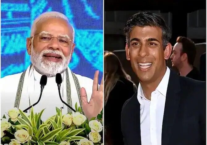 प्रधानमंत्री नरेंद्र मोदी ने ब्रिटेन के पीएम ऋषि सुनक से की मुलाकात।