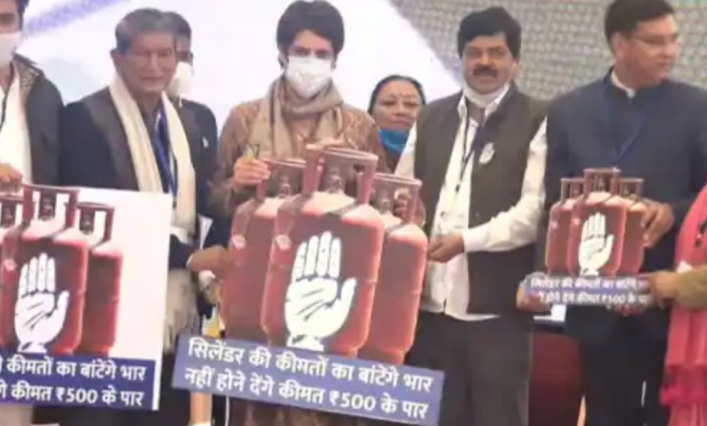 प्रियंका गांधी ने आज देहरादून पहुंच कर कांग्रेस का घोषणा पत्र जारी किया उत्तराखंड के सभी 70 विधानसभा क्षेत्रों से वर्चुअल रैली को संबोधित करते हुए प्रियंका गांधी ने चिंता जताई कि भाजपा सरकार में एलपीजी सिलेंडर के दाम एक हजार रुपये पार हो गए हैं पहाड़ पहुंचते रसोई गैस के दाम दो हजार रुपये तक हो जाते हैं गांधी ने भरोसा दिलाया है कि रसोई गैस के दाम किसी भी सूरत मे 500 रुपये के पार नहीं होंगे।