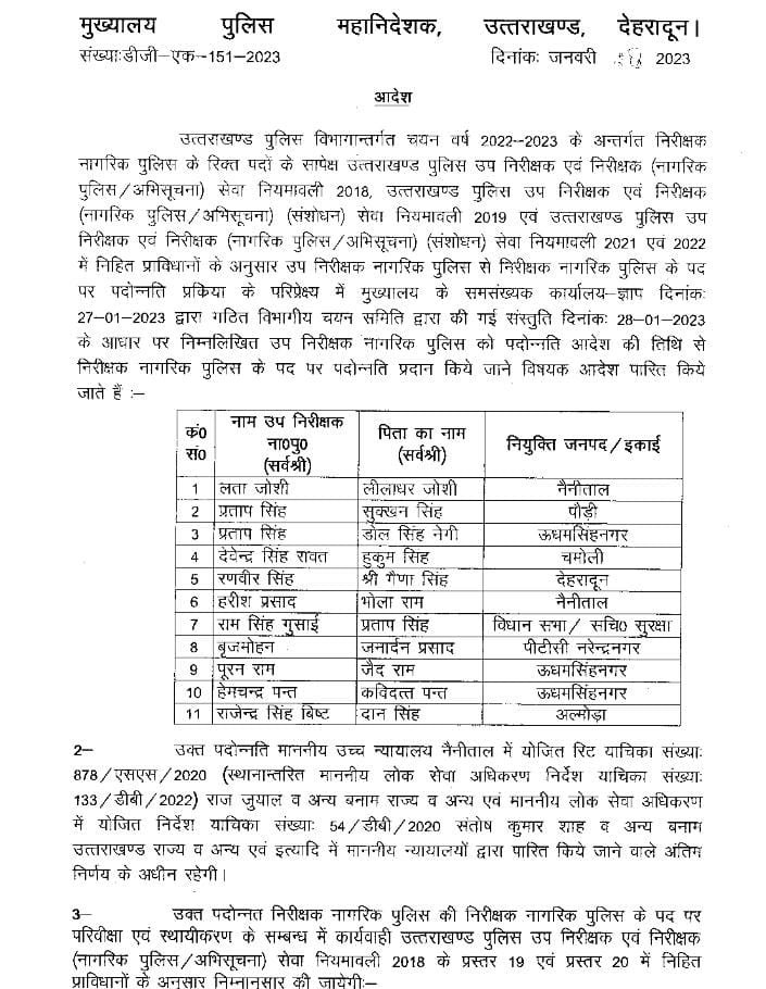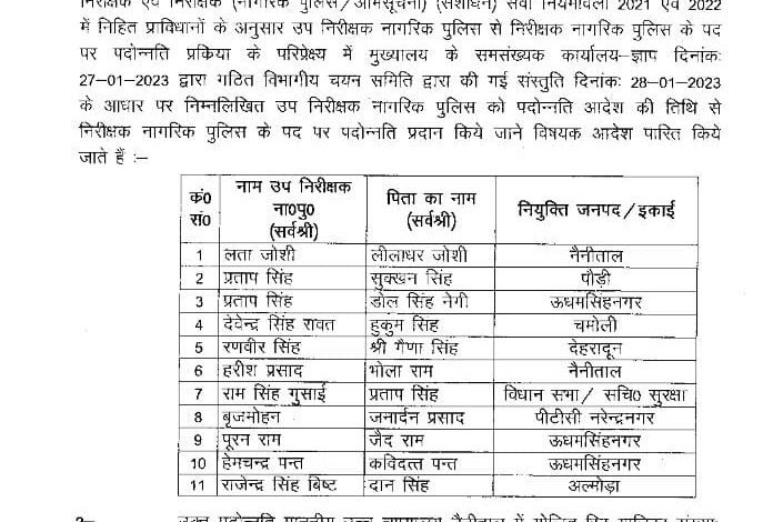 Promotion of constables in Uttarakhand Police, see list उत्तराखण्ड पुलिस में दारोगाओं के प्रमोशन, देखें सूची