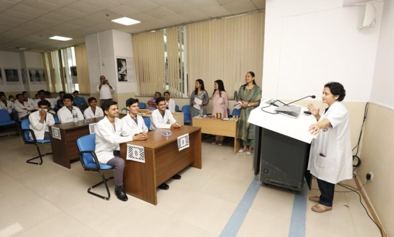 एनाटाॅमी विभाग के प्रथम वर्ष के छात्र-छात्राओं के लिए आयोजित क्विज प्रतियोगिता का शुभारंभ करते हुए मुख्य अतिथि संस्थान की कार्यकारी निदेशक प्रोफेसर (डॉ.) मीनू सिंह ने कहा कि मेडिकल की पढ़ाई में शरीर रचना विज्ञान का विशेष महत्व है। यह विषय चिकित्सा विज्ञान के क्षेत्र में महत्वपूर्ण भूमिका निभाता है। उन्होंने कहा कि क्विज के आयोजन से विद्यार्थिंयों को सीखने का अवसर प्राप्त होता है और इससे बौद्धिक ज्ञान बढ़ने के साथ-साथ हमारी स्किल्स भी विकसित होती है।