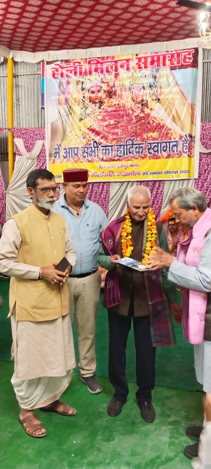 ग्राम पंचायत हरिपुर कला के सौजन्य से आयोजित होली मिलन इस कार्यक्रम में क्षेत्र के वरिष्ठ नागरिकों को सम्मानित भी किया गया