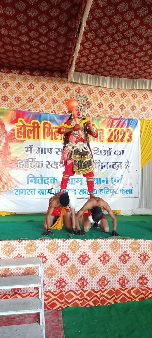 ग्राम सभा हरिपुर कला के सौजन्य यहां स्थित एक वेडिंग प्वाइंट में आयोजित होली मिलन कार्यक्रम का शुभारंभ ग्राम प्रधान गीतांजलि ज़ख्मोला वाह पंचायत प्रतिनिधियों द्वारा संयुक्त रूप से किया गया । इस दौरान सभी ने फूलों की होली खेली। इस कार्यक्रम में सांस्कृतिक और रंगारंग कार्यक्रमों की प्रस्तुति भी दी गई मनमोहक राधा कृष्ण शंकर पार्वती की झांकियों ने सबका मन मोह लिया। कार्यक्रम में संत समाज से लेकर राजनेता प्रशासनिक अधिकारी एवं जनप्रतिनिधि गण भी शामिल रहे ।