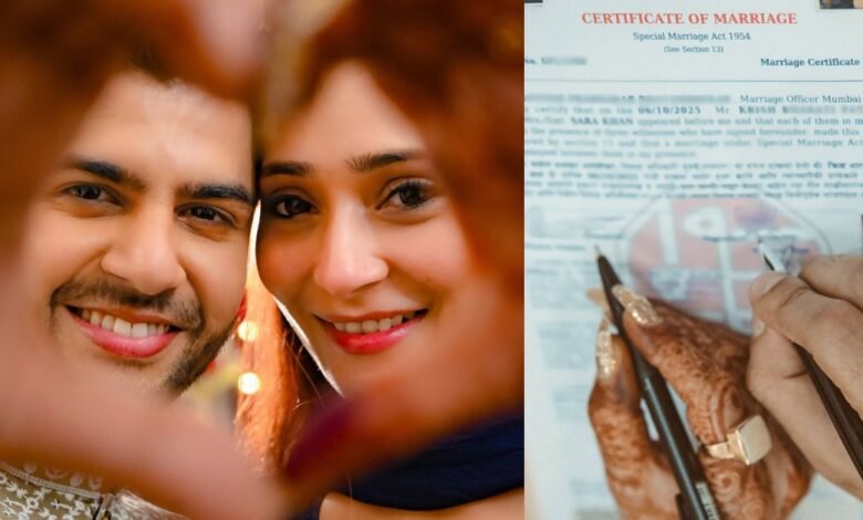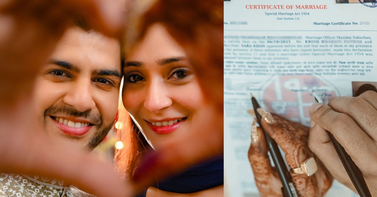 Sara Khan Wedding: सारा खान ने सोशल मीडिया पर एक पोस्ट शेयर किया है जिसमें उनकी कई तस्वीरें हैं। एक में उन्होंने अपनी और कृष की तस्वीर साझा की है और वहीं दूसरी में मैरिज सर्टिफिकेशन पर साइन करते हुए दिखाया गया है। उन्होंने पोस्ट के कैप्शन में लिखा है – ‘दो आस्थाएं, एक कहानी, असीम प्यार। ‘कुबूल है’ से लेकर ‘सात फेरे’ तक इस दिसंबर का इंतजार है। दो दिल और दो संस्कृतियां हमेशा के लिए एक हो गईं। हमारी प्रेम कहानी एक ऐसा मिलन है जहाँ आस्थाएं जुड़ती हैं, बंटती नहीं। जब प्यार ही सबसे बड़ी बात बन जाए, तो सब कुछ एक खूबसूरत कहानी बन जाता है। हमें अपना आशीर्वाद दीजिए, क्योंकि यह मिलन सबके लिए खास है।’