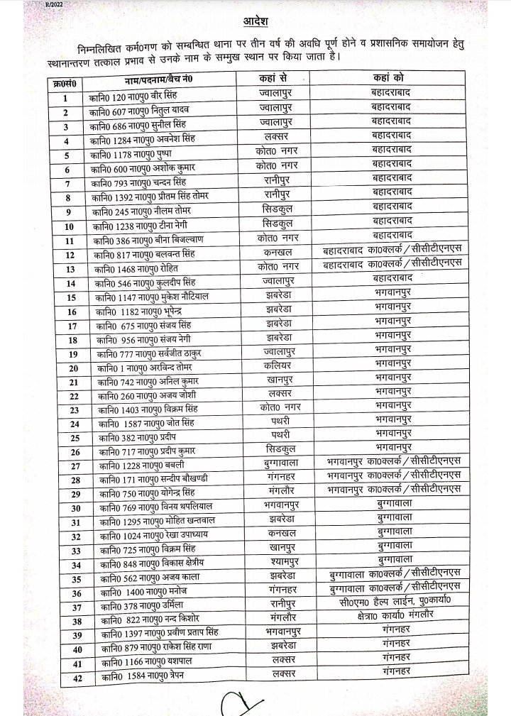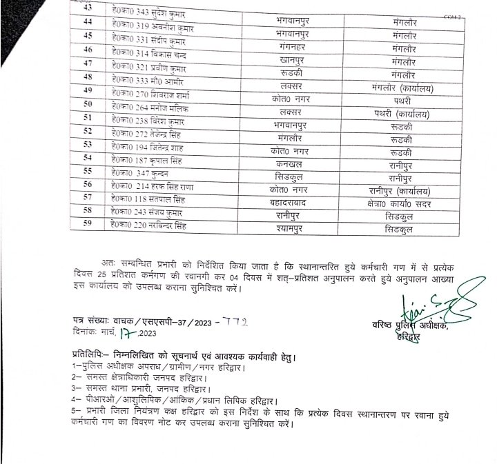 SSP transfers more than 300 policemen in Haridwar district, stir
