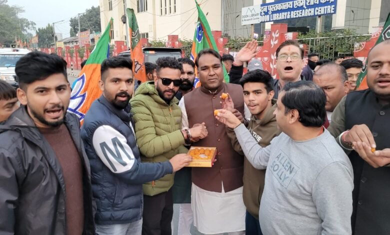 देहरादून : आज भारतीय जनता पार्टी महानगर कार्यालय में महानगर अध्यक्ष सिद्धार्थ अग्रवाल के नेतृत्व में युवा मोर्चा द्वारा माननीय सर्वोच्च उच्च न्यायालय में आर्टिकल 370 के विरोध में विभिन्न याचिकाओं पर सुनवाई करते हुये सुप्रीम कोर्ट नें एक अहम फैसला करते हुये कहा की केन्द्र सरकार द्वारा धारा 370 हटाने का फैसला संवैधानिक तौर पर सही है। इस पर महानगर युवा मोर्चा के द्वारा आतिशबाजी कर मिष्ठान वितरण किया गया।