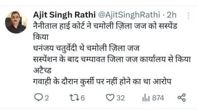 नैनीताल- उत्तराखंड हाईकोर्ट ने चमोली के जिला न्यायाधीश धनंजय चतुर्वेदी को किया निलंबित