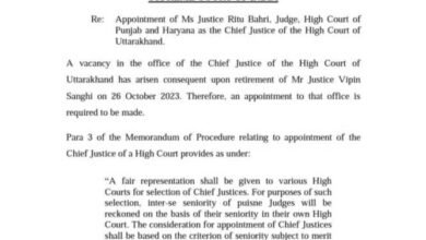 हाईकोर्ट की नई चीफ जस्टिस बनीं ऋतु बाहरी!नोटिफिकेशन जारी