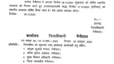 Uttarakhand : जनपद नैनीताल के सभी कार्यालय की छुट्टी का संशोधित आदेश जारी किया गया है सभी सरकारी कार्यालय संस्थानों…