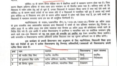 शिक्षा विभाग से बड़ी सामने आ रही है। विभाग ने शैक्षिक सत्र 2022- 2023 में छात्र नामांकन तथा प्रवेशोत्सव के…