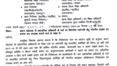 Uttarakhand :- हाईस्कूल एवं इण्टरमीडिएट स्तर पर परिषदीय परीक्षा परीक्षाफल सुधार परीक्षा (द्वितीय) अथवा परिषदीय परीक्षा 2024 में सम्मिलित होने…