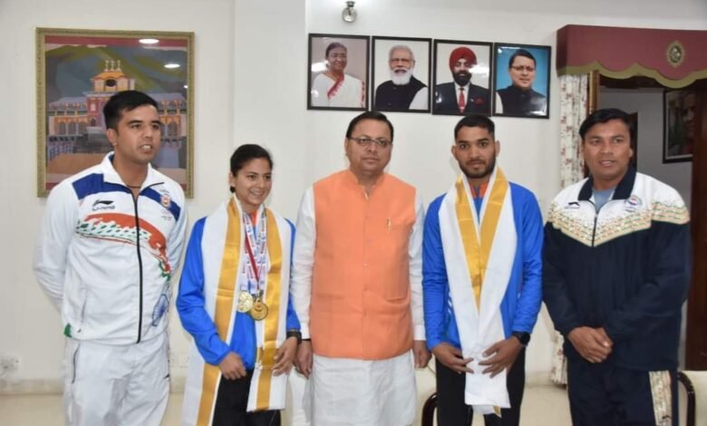 मुख्यमंत्री ने स्वर्ण पदक जीतने वाले दोनों एथिलीट को ₹1-1 लाख की धनराशि देने की घोषणा।