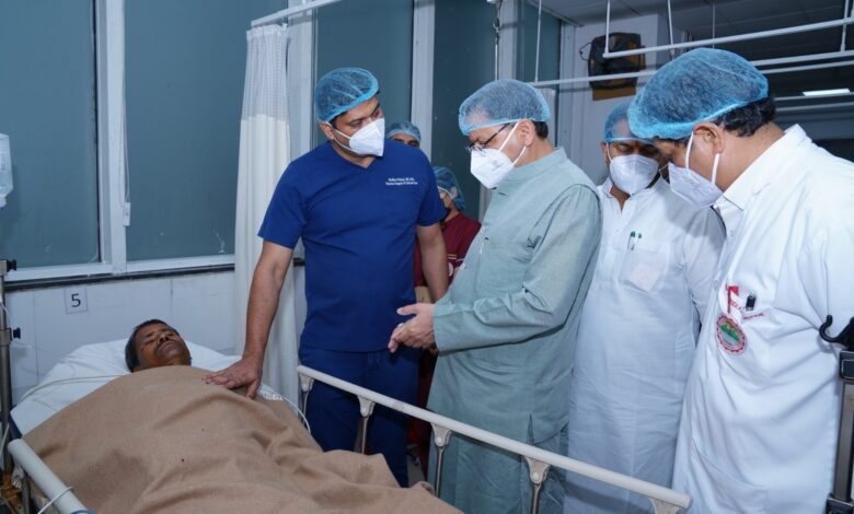 ऋषिकेश : मुख्यमंत्री पुष्कर सिंह धामी ने एम्स ऋषिकेश जाकर जनपद चमोली की दुखद घटना में घायल हुए 6 घायलों का हालचाल जाना। उन्होंने घायलों की शीघ्र स्वास्थ्य लाभ की कामना की है। मुख्यमंत्री ने घायलों के समुचित इलाज के संबंध में एम्स के चिकित्सकों से भी जानकारी प्राप्त की। उन्होंने घायलों के इलाज में कोई कमी न रहे, इसकी भी चिकित्सकों से अपेक्षा की।