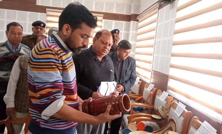 जनपद में स्थानीय लघु उद्योगों द्वारा निर्मित स्थानीय उत्पादों का जिलाधिकारी ने कलेक्ट्रेट में किया निरीक्षण