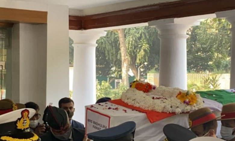सीडीएस जनरल बिपिन रावत और उनकी पत्नी मधुलिका रावत का आज शाम चार बजे दोनों का पूरे सैन्य सम्मान के साथ उनका अंतिम संस्कार किया जाएगा। वहीं उनका पार्थिव शरीर उनके आवास पर लाया गया जिसमें गृह मंत्री अमित शाह ने उनको सीडीएस बिपिन रावत और उनकी पत्नी मधुलिका रावत को श्रध्दांजलि अर्पित की साथ ही उनके अंतिम दर्शन के लिए कांग्रेस नेता राहुल गांधी ने उनके आवास पर पहुंच कर उन्हें श्रध्दांजलि दी।