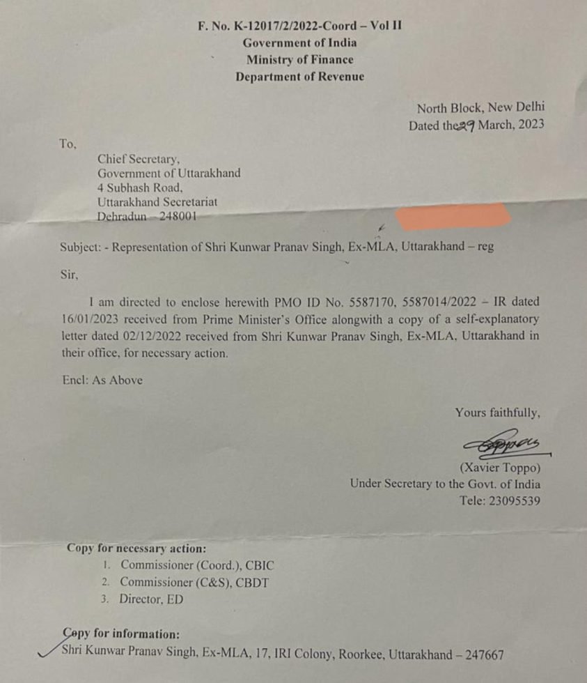 प्रणव चैंपियन के दिसंबर 2022 को लिखे पत्र पर पीएमओ आफिस ने लगभग 4 महीने बाद गम्भीर कदम उठाते हुए सम्बंधित विभाग को जांच के आदेश किये। प्रधानमन्त्री कार्यालय के बाद हरकत में आये वित्त मंत्रालय के राजस्व विभाग में अनुसचिव जेवियर टोप्पो ने 29 मार्च को इस संबंध में उत्तराखंड के मुख्य सचिव को जरूरी कार्रवाई के लिए लिखा है।