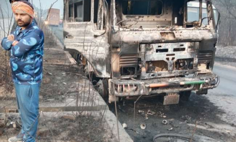 बिहार-झारखंड सीमा पर गैस भरा टैंकर पलटा हादसे में तीन लोगों मौत