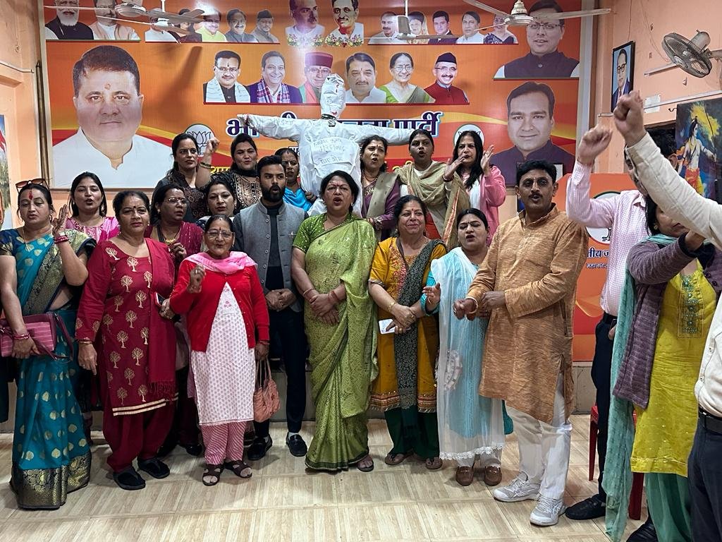 आज सीएम नीतीश कुमार का लैंसडाउन चौक पर किया पुतला दहन देहरादून : आज भारतीय जनता पार्टी महानगर महिला मोर्चा द्वारा बिहार के मुख्यमंत्री नीतीश कुमार का लैंसडाउन चौक पर पुतला दहन किया गया नीतीश कुमार द्वारा महिलाओं के प्रति अमर्यादित बयान देने पर भारतीय जनता पार्टी महिला मोर्चा के कार्यकर्ताओं में बहुत अधिक रोष है. इस प्रकार के निंदनीय बयान देने वाले नेताओं को बिहार ही नहीं अभी तो पूरे देश की महिला शक्ति आने वाले समय में सबक सिखाएगी जो व्यक्ति अपनी मां बहन की इज्जत नहीं कर सकता ऐसे व्यक्ति को प्रदेश का मुखिया बनने लायक नहीं है इस बयान का मातृशक्ति द्वारा घोर निंदा की जाती है। पुतला दहन का नेतृत्व कर रही महानगर महिला मोर्चा की अध्यक्ष अर्चना बागड़ी महामंत्री सुषमा कुकरेती मंडल अध्यक्ष तारा देवी अंशिका शर्मा अरुण लोचन अनीता वाल्मीकि रेनू सिंह अनीता मल्होत्रा ममता अग्रवाल विमल गॉड गीता साहनी सोनी थापा एवं किसान मोर्चा के प्रदेश अध्यक्ष जोगिंदर सिंह पुंडीर महानगर वरिष्ठ उपाध्यक्ष राजेंद्र ढिल्लों सुनील शर्मा महानगर युवा मोर्चा अध्यक्ष देवेंद्र बिष्ट पारस गोयल आदि कार्यकर्ताओं ने पुतला दहन किया।