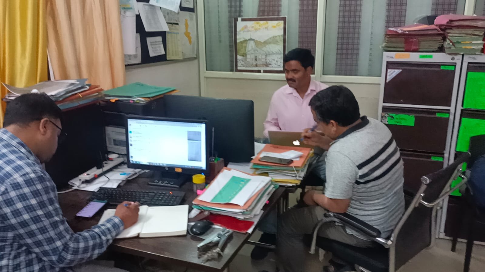 अपने कार्यालय कक्ष में उपस्थित अपर जिलाधिकारी वित्त एवं राजस्व रामजीशरण शर्मा द्वारा सूचना प्राप्त होते ही आपदा परिचालन केंद्र में बागडोर संभालते हुए राहत एवं बचाव कार्य मॉनिटरिंग एवं सम्बंधित अधिकारियों को आवश्यक दिशा निर्देश दे रहे हैं।