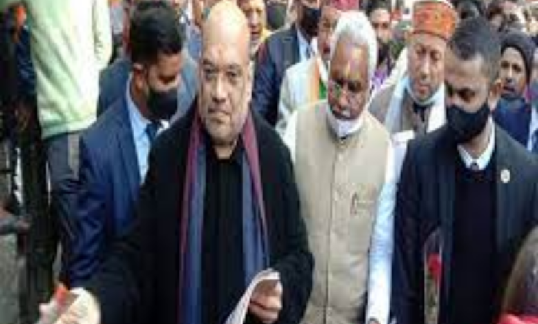 उत्तराखंड विधानसभा चुनाव से ठीक पहले केंद्रीय गृह मंत्री अमित शाह आज रुद्रप्रयाग के दौरे पर पहुंच रखे है, गृह मंत्री अमित शाह हेलीकॉप्टर के माध्यम से रुद्रप्रयाग के गुलाबराय मैदान में पहुंचे, जहां कार्यकर्ताओं द्वारा उनका स्वागत किया गया। गुलाबराय मैदान में उतरने के बाद अमित शाह सीधे रुद्रनाथ महादेव के मंदिर में दर्शन करने पहुंचे, मंदिर के दर्शन के बाद केंद्रीय मंत्री अब रुद्रप्रयाग के संगम बाजार से मुख्य बाजार में पार्टी प्रत्याशी भरत चौधरी के पक्ष में व्यापारियों और जनता से मिलकर समर्थन कर रहे है।
