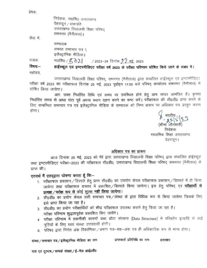 रामनगर - उत्तराखंड विद्यालय शिक्षा परिषद के द्वारा हाईस्कूल एवं इंटरमीडिएट परीक्षा वर्ष 2023 का परीक्षा परिणाम 25 मई को सुबह 11:00 बजे रामनगर के बोर्ड मुख्यालय से होगा घोषित उत्तराखंड बोर्ड का रिजल्ट इस दिन होगा घोषित, तिथि हुई तय