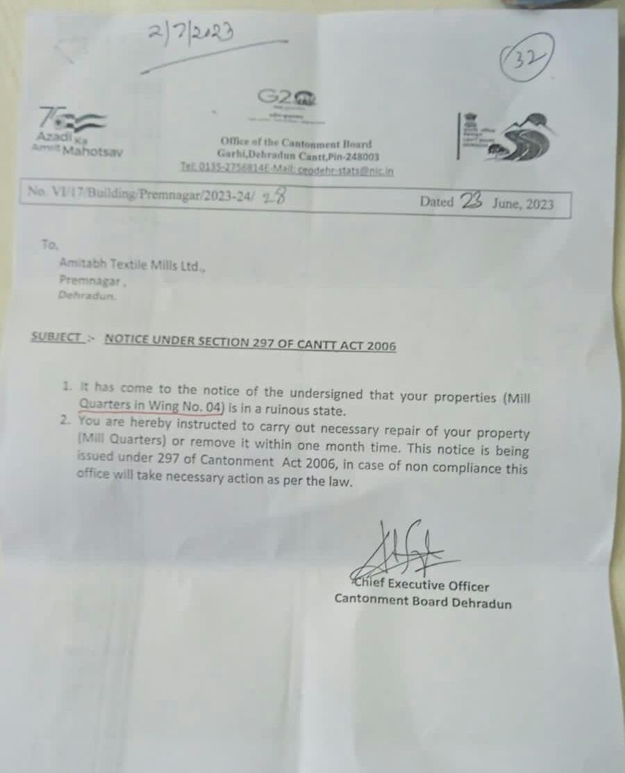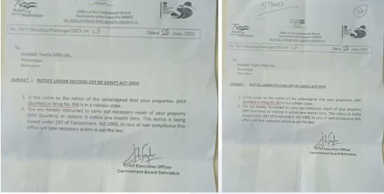 सूत्रों के मुताबिक कैंट बोर्ड को मिल प्रबंधन द्वारा सभी कागजात उपलब्ध करा दिए गए हैं और कैंट बोर्ड के लीगल सलाहकार ने भी मामले को ओके कर दिया है। इसी लीगल सलाहकार ने पिछले साल कैंट बोर्ड को मामले में निर्णय न लेने को कहा था। अब इस मुद्दे पर कैंट बोर्ड क्यों सो रहा है समझ नहीं आता?