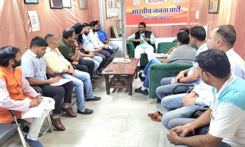 देहरादून : आज महानगर कार्यालय पर महानगर अध्यक्ष की अध्यक्षता में भारतीय जनता पार्टी महानगर के सभी मंडलों के एवं सभी मोर्चा के मीडिया प्रभारी एवं सोशल मीडिया वी आईटी विभाग की बैठक आयोजिक की गई।